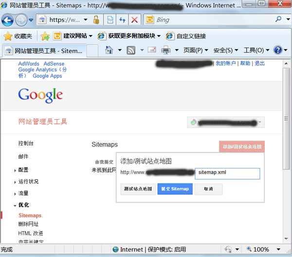 下面以提交Google 网站管理工具 图解 提交SiteMap