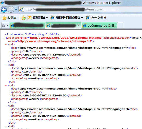 osCommerce高级版带通用XML网站地图.