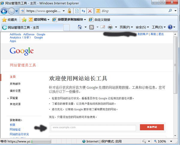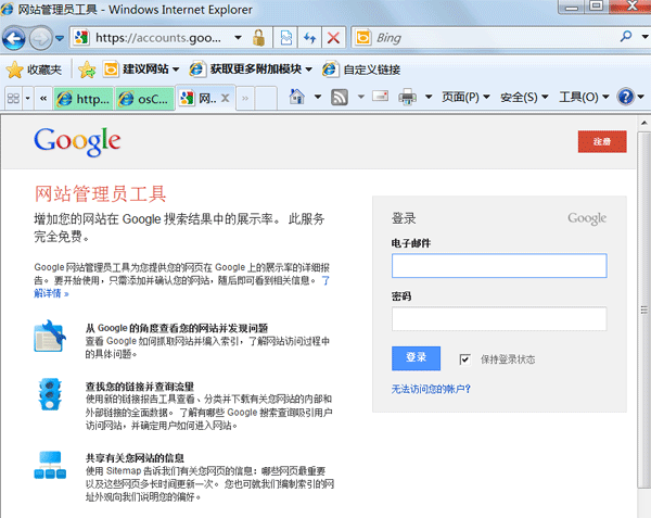 网址: http://www.google.com/webmasters/tools/